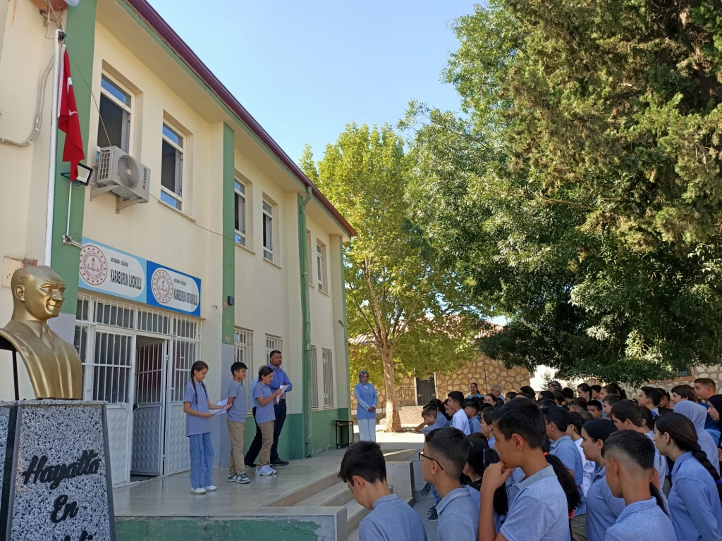 Okulumuz öğretmenleri . öğrencileri ve velilerin katılımıyla İlköğretim Haftası okulumuz bahçesinde yapılan törenle kutlandı.